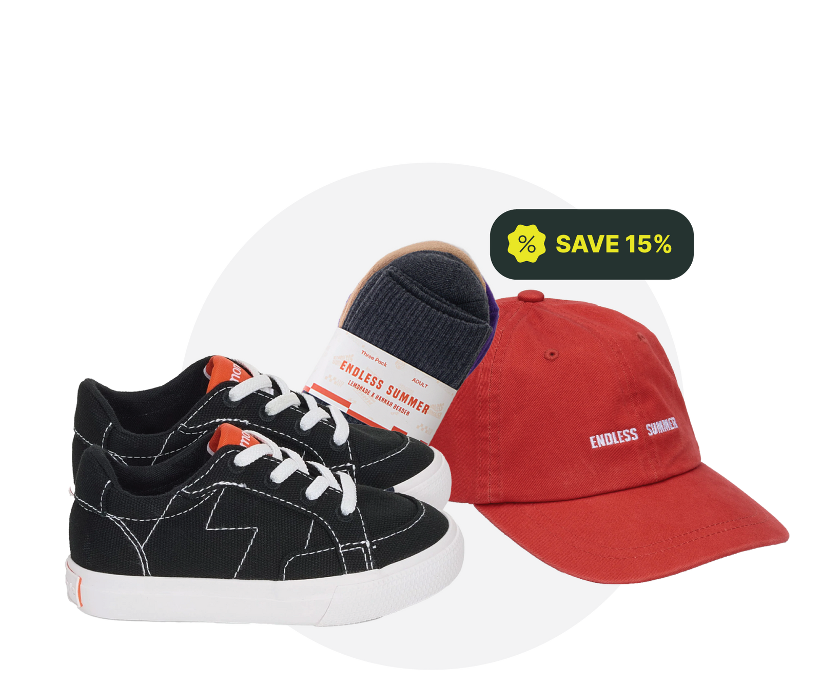 Shop any shoe, hat and sock and get 15% OFF.